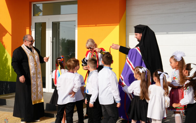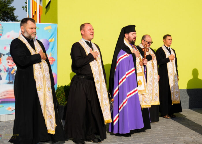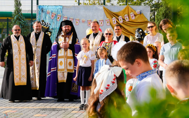 Настав й той найочікуваніший святковий момент перерізання стрічки засновниками Католицької школи: владикою Максимом, пані Віталією та отцем Романом. Він ознаменував офіційне відкриття школи імені Дона Боско.