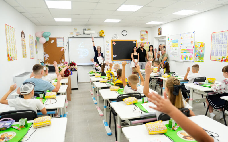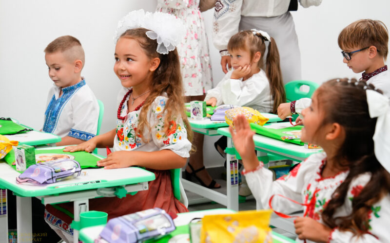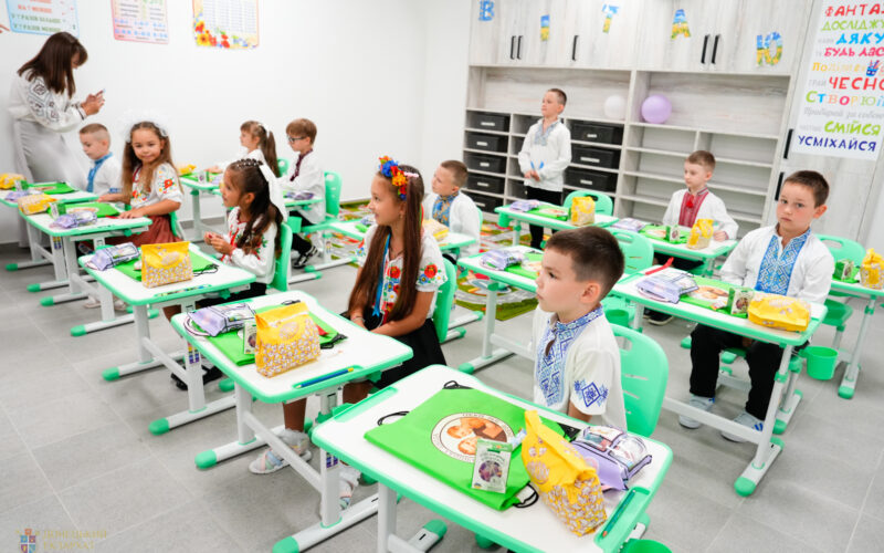 Пані Дар’я запросила дітей і батьків пройти в укриття, оглянути ціле приміщення школи, де відбуватиметься навчальний процес та познайомитися з вчителями. А на дітей у класах вже чекали приємні подарунки та цікаві завдання від вчителів.
