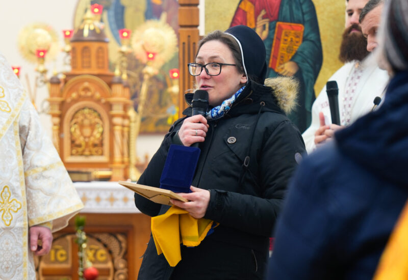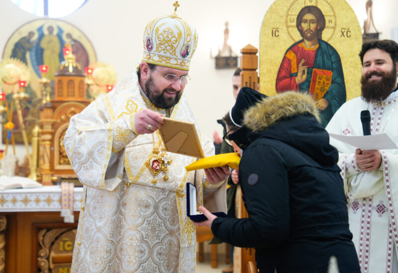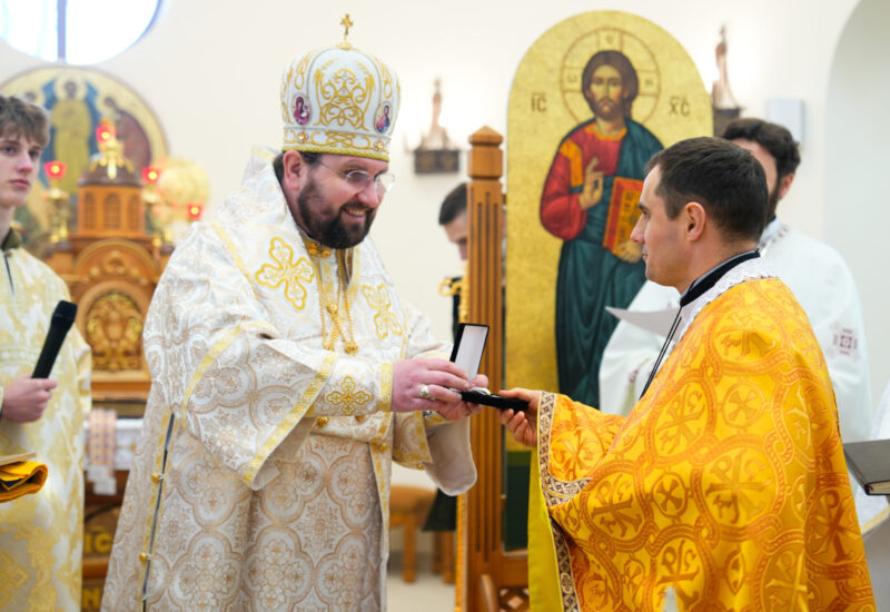 По завершенні богослужіння владика Максим урочисто вручив нагороди від Головнокомандувача Збройних Сил України за активну волонтерську діяльність отцю Олександру Богомазу та сестрі Онуфрії Бачинській.