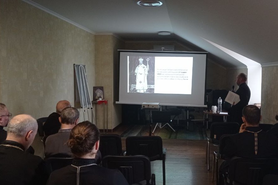 Відтак священники послухали доповідь отця-доктора Тараса Сала на тему: “Соціальної доктрини Церкви.Постать Андрея Шептицького” з нагоди 160 річниці з дня його народження.